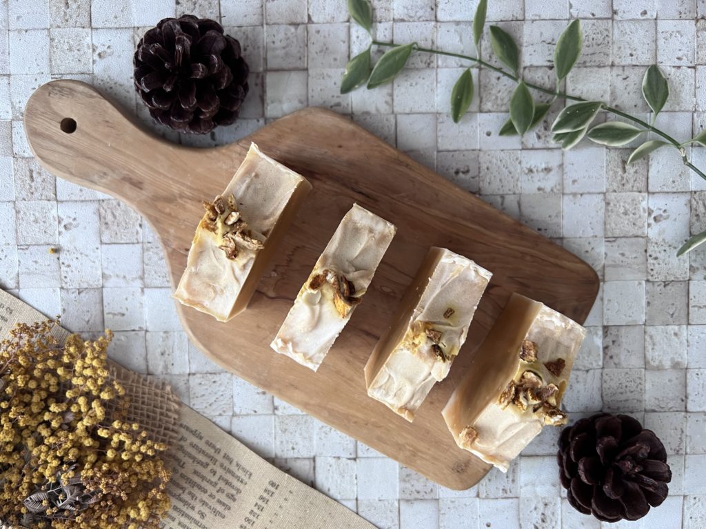 私の石けんはフローラル系が多いので、ウッディ系の香りを使う事は珍しいのですが、とても新鮮で癒されました。